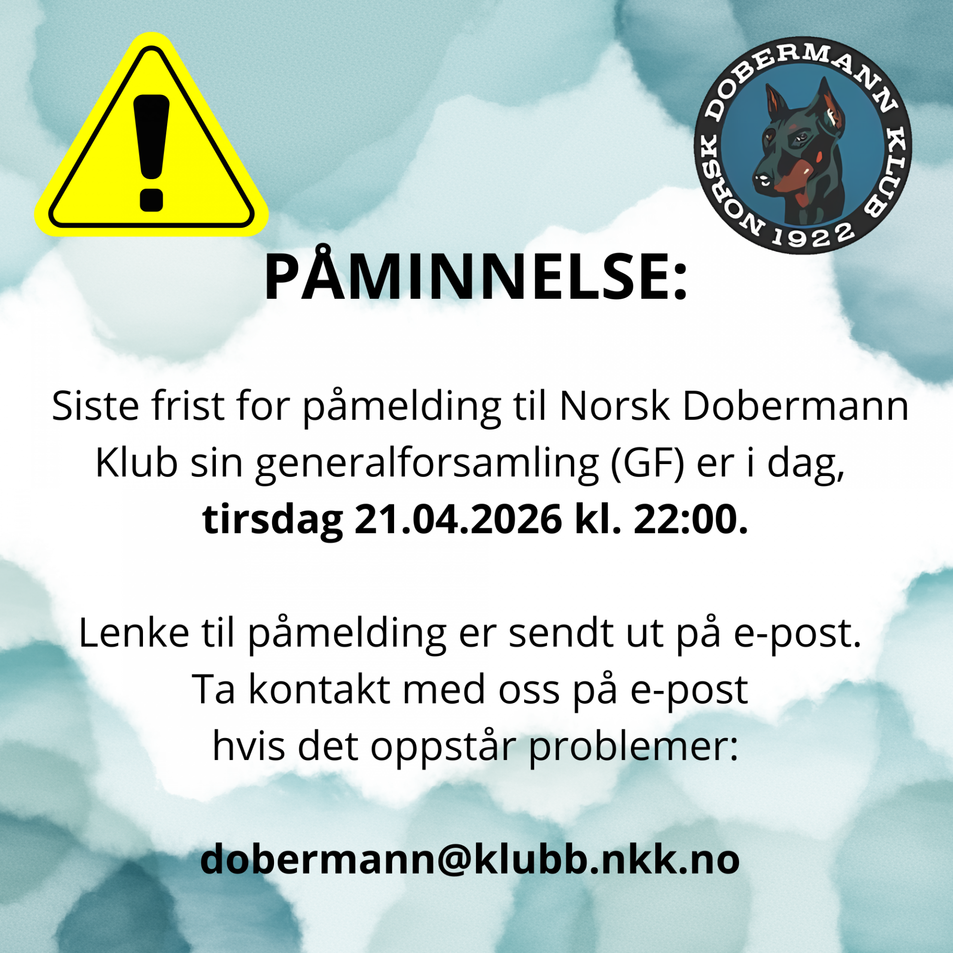 I dag er siste dag for påmelding til generalforsamlingen som skal være imorgen 22. april 2026.